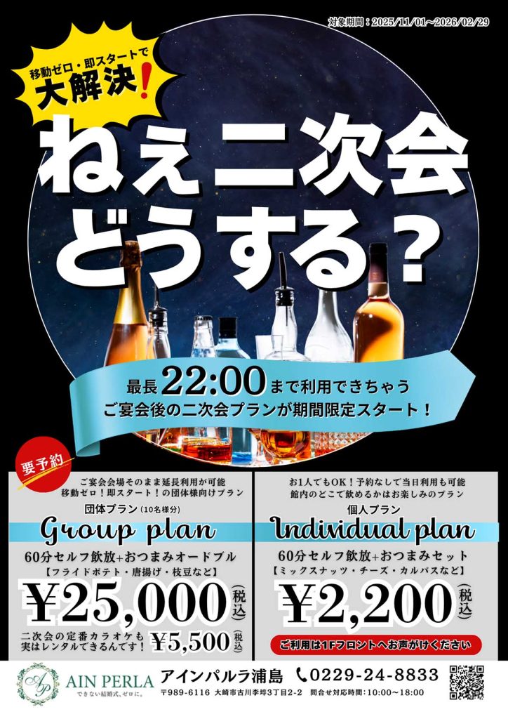 女子会や結婚式後の二次会など団体様での各種宴会はもちろん、