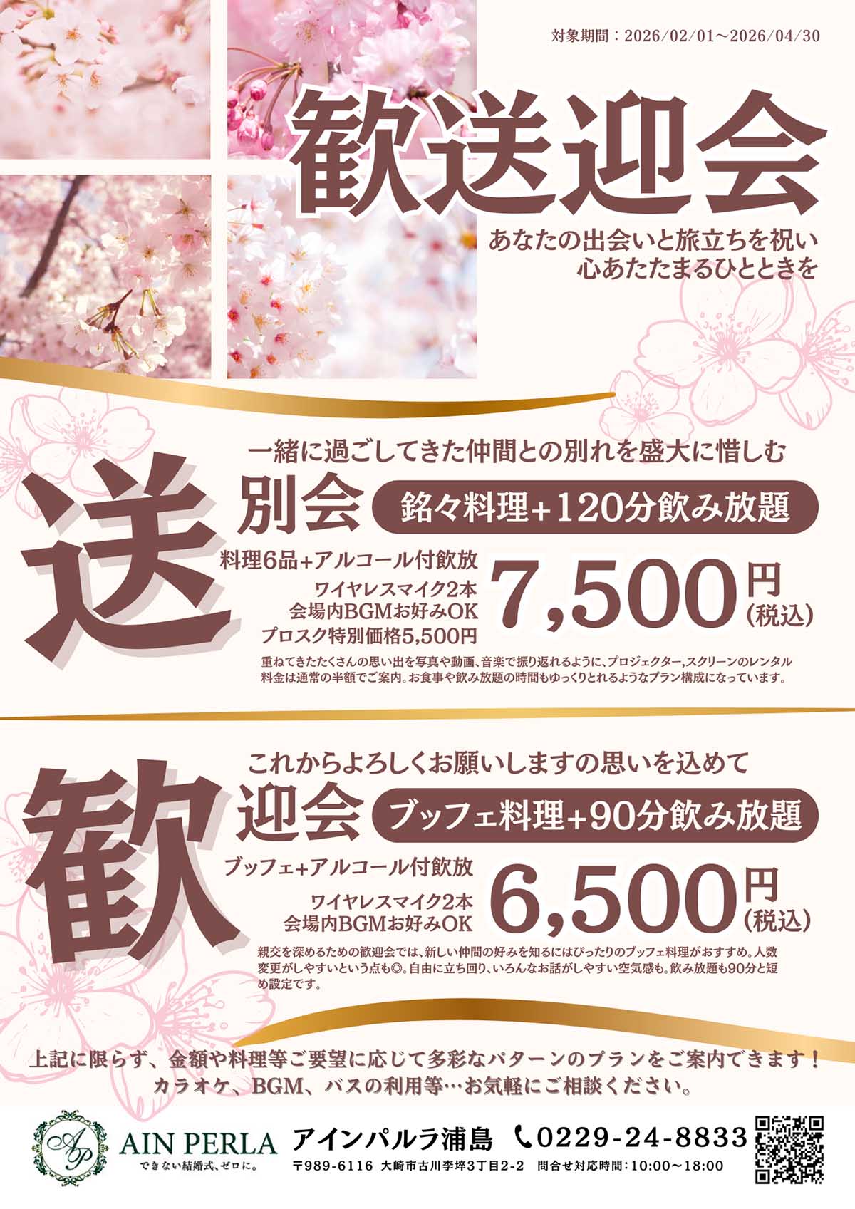 歓迎会、送別会はぜひアインパルラ浦島で、素敵な時間をお過ごしください♫